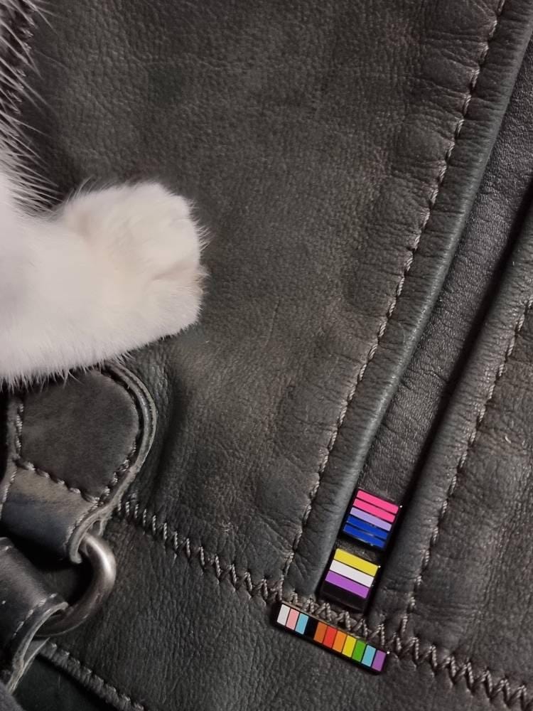 The 'Baton' series of pins take iconic pride flags and distil them into their most minimalist form. These streamlined, elegant designs seamlessly integrate into any outfit, and draw just the right amount of attention. Abstract enough to look just like a colourful pin, but those who know - will know! With a single line of vibrant colour swatches, these pins make a statement of pride without being too flashy or over-the-top.
