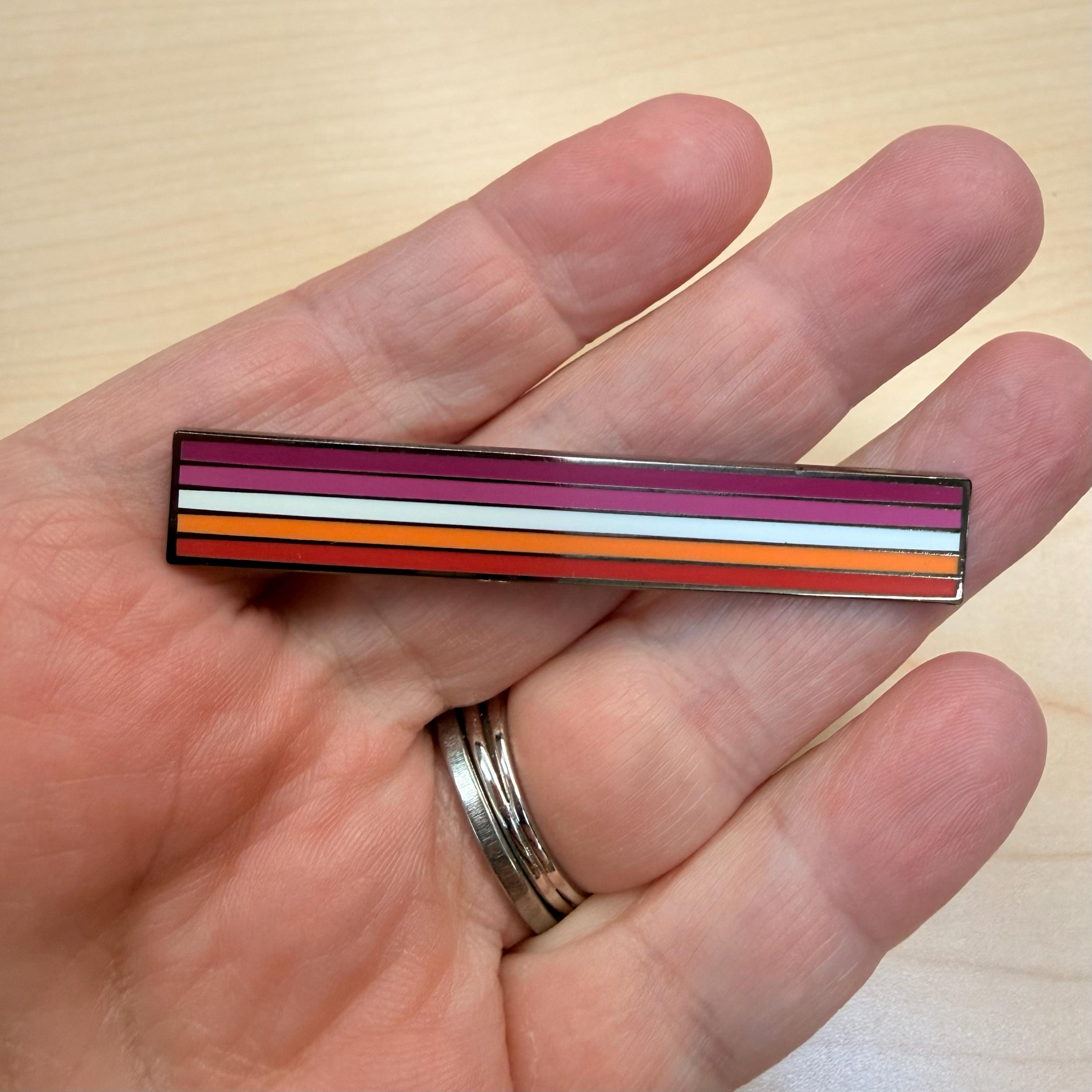 This series of pins takes iconic pride flags and turns them into extra-long statement pieces. Whether you're feeling the need for something bold and eye-catching, or just want to make your outfit pop, these pins have got you covered!
