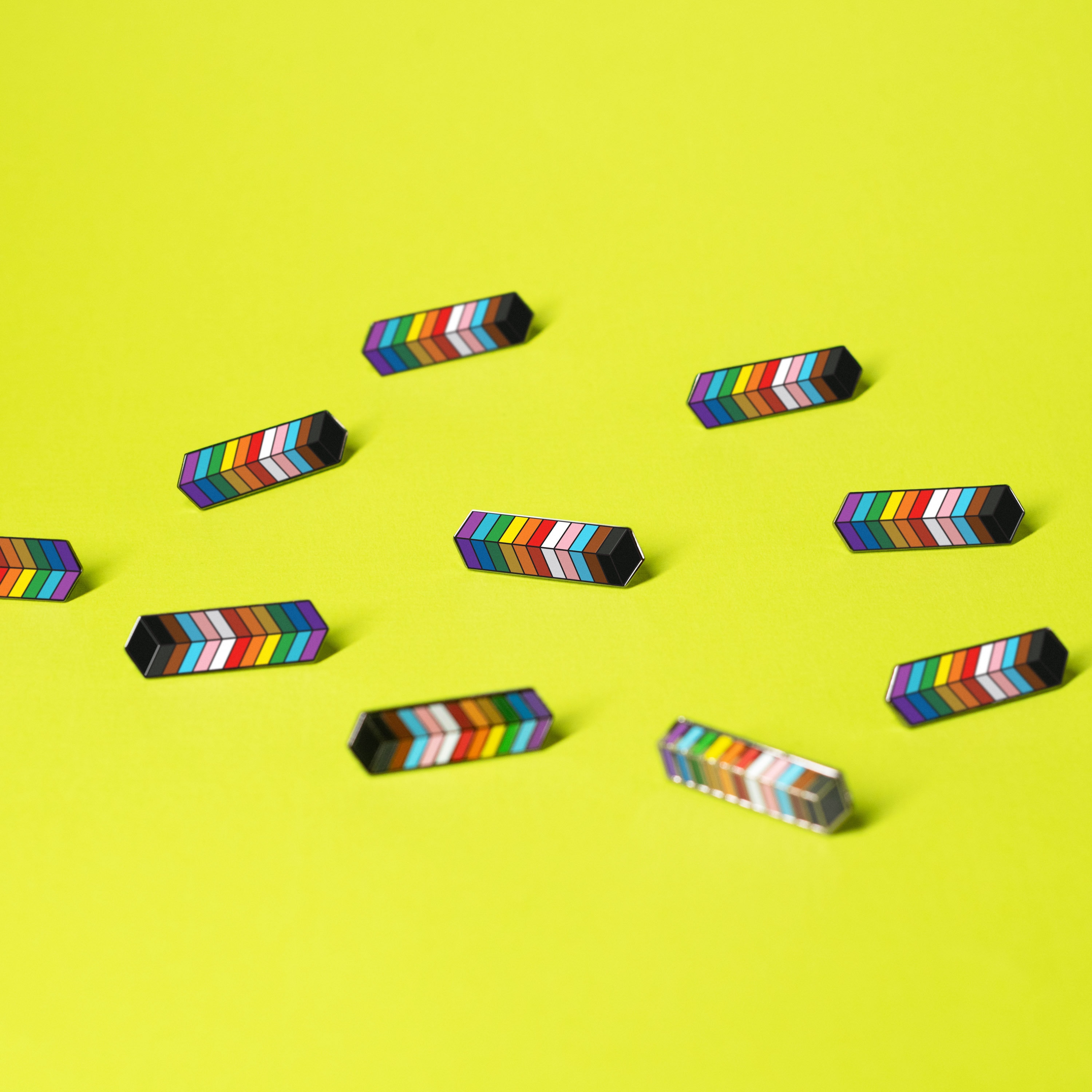 The Geometric series of pride pins abstracts the iconic rainbow flag into stylish queer statements. These streamlined, elegant badge designs seamlessly integrate into any outfit. Minimalist enough to look just like a colourful pin, but those who know - will know!