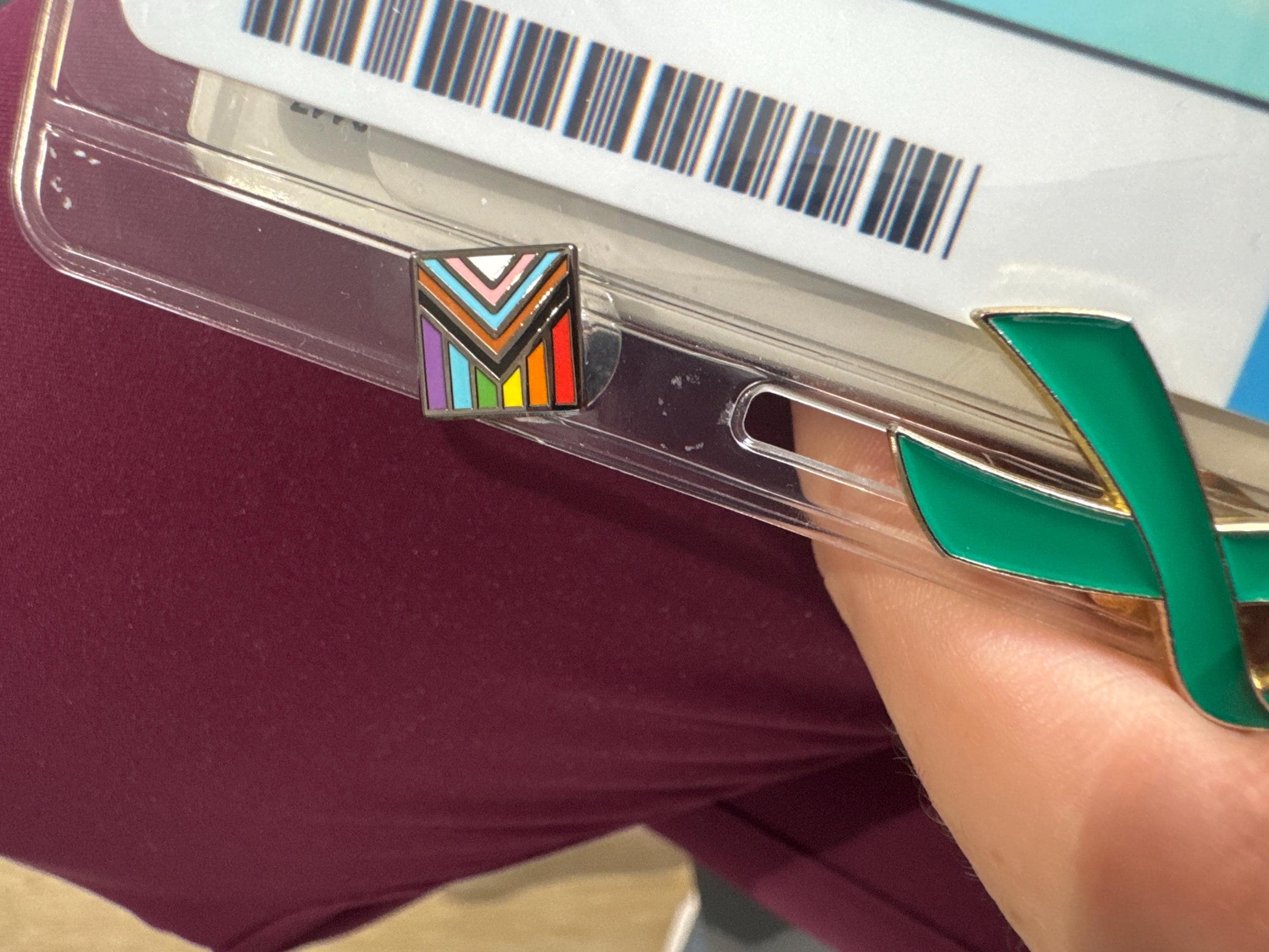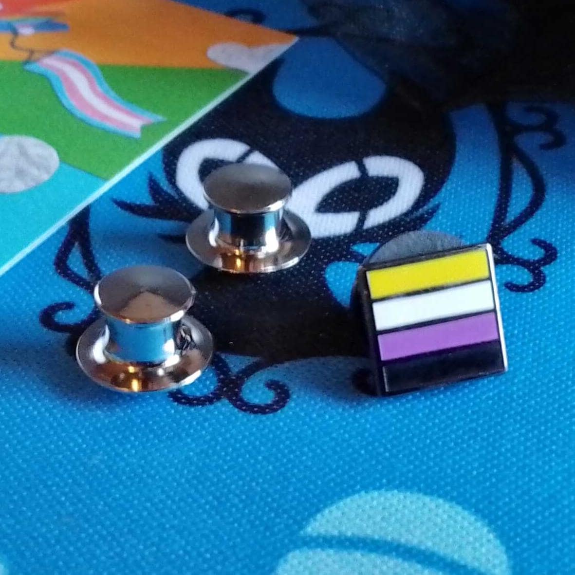 The Mini Pride Flag enamel pin series is subtle and streamlined, and easily pairs with your everyday outfits! The minimalist, professional look makes it a perfect accessory to bring a little bit of rainbow pride to the office or school.
