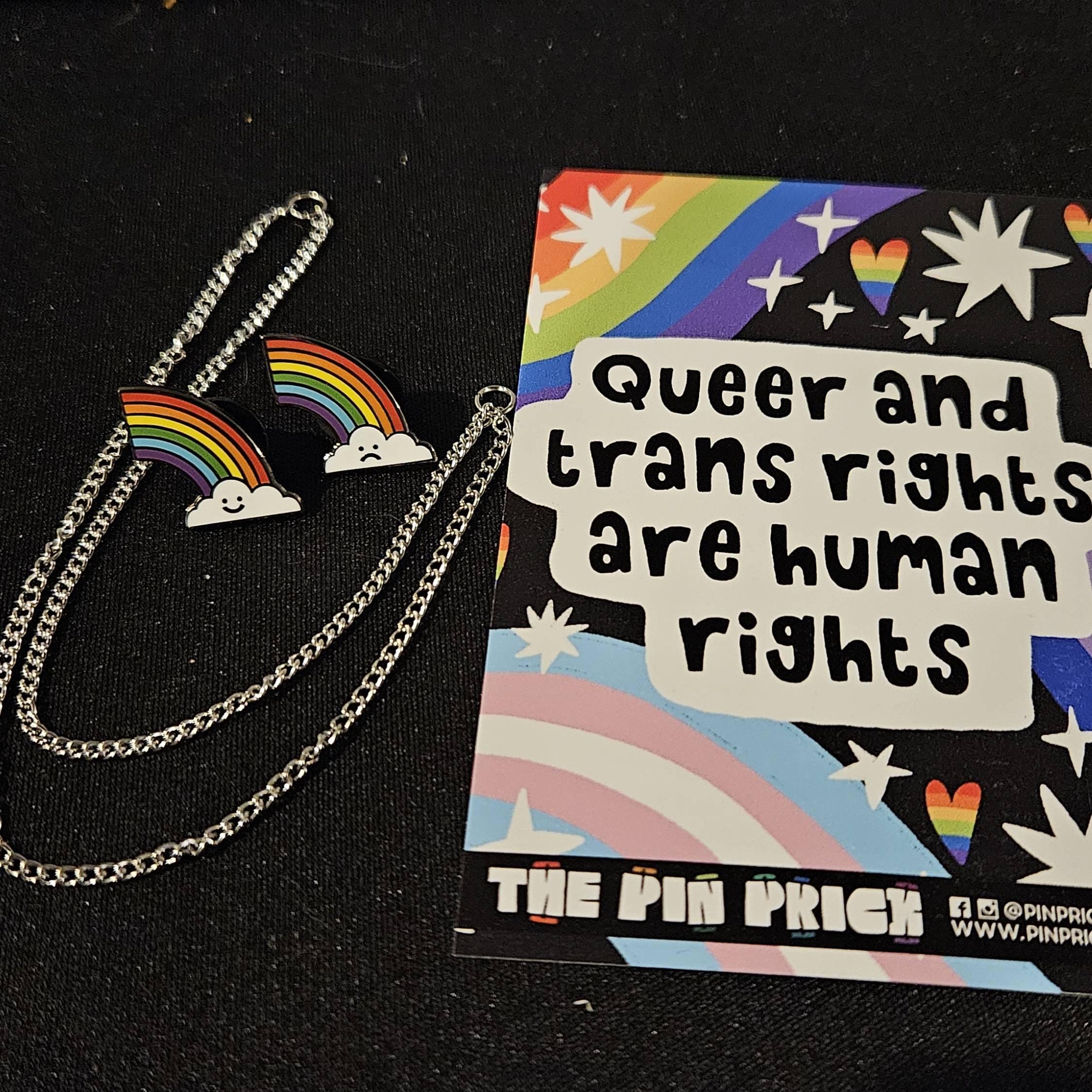 This is my second purchase of this item, the first time I was sent two of the left rainbow instead of a left and right. It was very easy to chat with Zar and get this corrected so I could get the sets I wanted! On top of the lovely art included designed by queer/lgbt+ artists, this will always be one of my favorite shops for pride accessories 🌈❤️ Thank you Zar and the team at The Pin Prick!